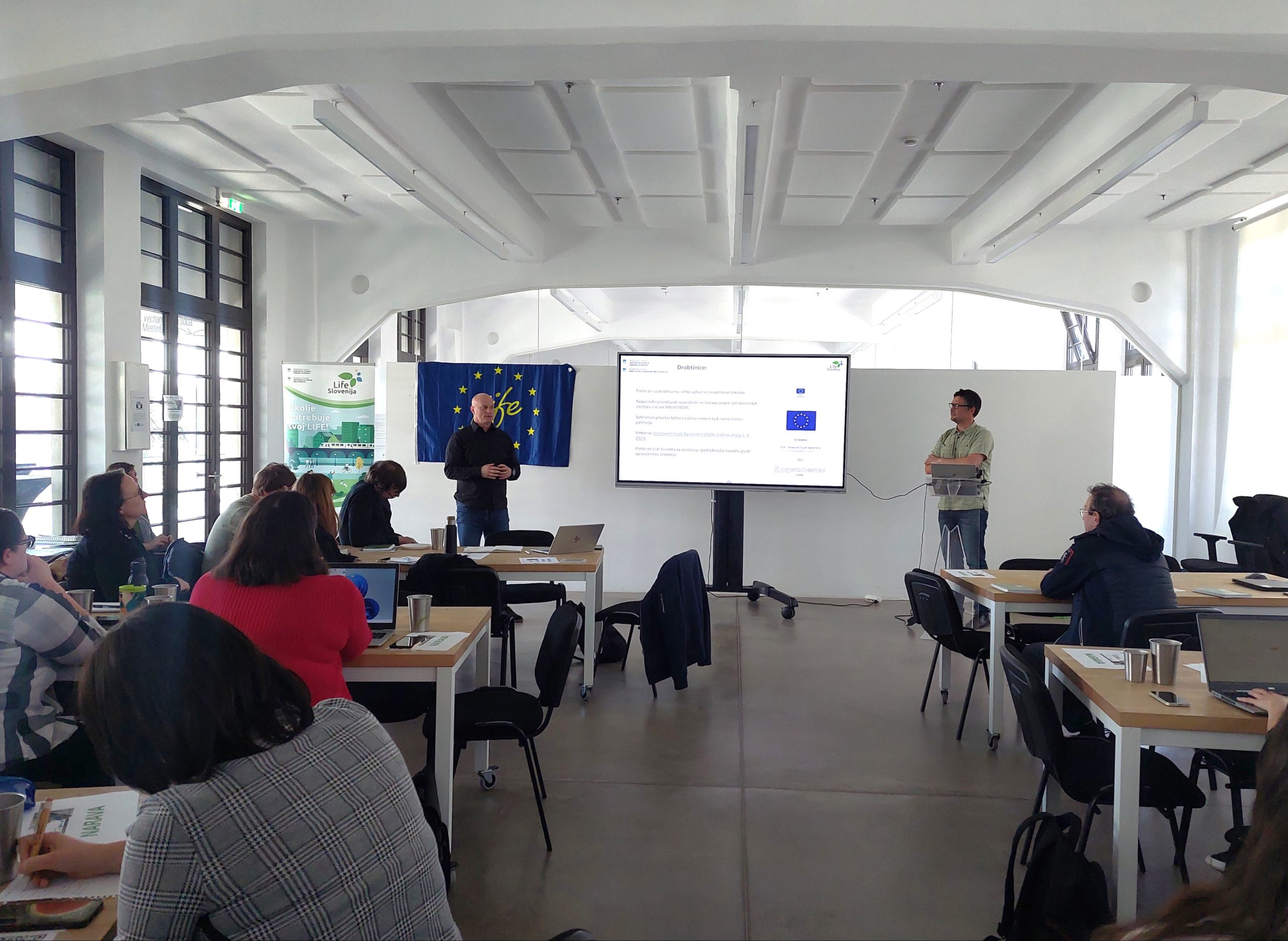 Uspešno smo zaključili zadnjo, 3. LIFE delavnico za pisanje projektnih prijav 2026, ki je potekala 8. in 9. aprila 2026 v Centru Rog v Ljubljani. Oba termina sta imela veliko udeležbo, kar potrjuje velik interes za pripravo kakovostnih projektnih prijav v okviru programa LIFE.